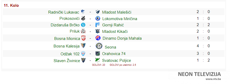 Jedinu gostujuću pobjedu u 11.kolu upisali su fudbaleri Svatovca koji donijeli bodove iz Živinica. Dizdaruša i Gornji Rahić su podijelili bodove, dok su u ostalim utakmicama slavili domaćini.