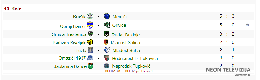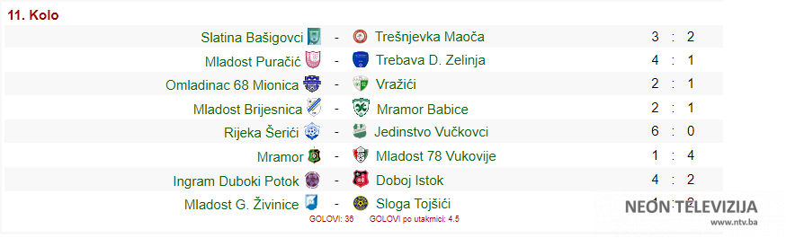 Napomena: Za Treću kantonalnu ligu rezultati još nisu objavljeni.