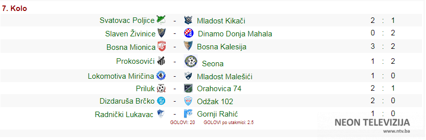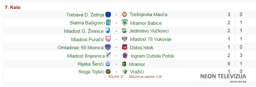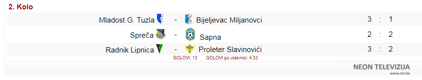 Po jedan bod ovog vikenda upisale su ekipe Spreča i Mladost 78 Vukovije Donje. Bez bodova ostale su kalesijske ekipe u Drugoj ligi FBiH Mladost Kikači poražena je u od ekipe Svatovac Poljice , a Bosna Kalesija od ekipe Bosna Mionica. Bosna Kalesija u 7 utakmica ima 5 osvojenih bodova, Mladost iz Kikača 10 bodova. Bez bodova je ovog vikenda ostao i Bijeljevac.