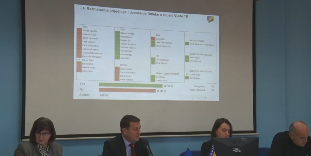 Za smjenu Vlade glasalo je 18 delegata dok je 16 bilo protiv.