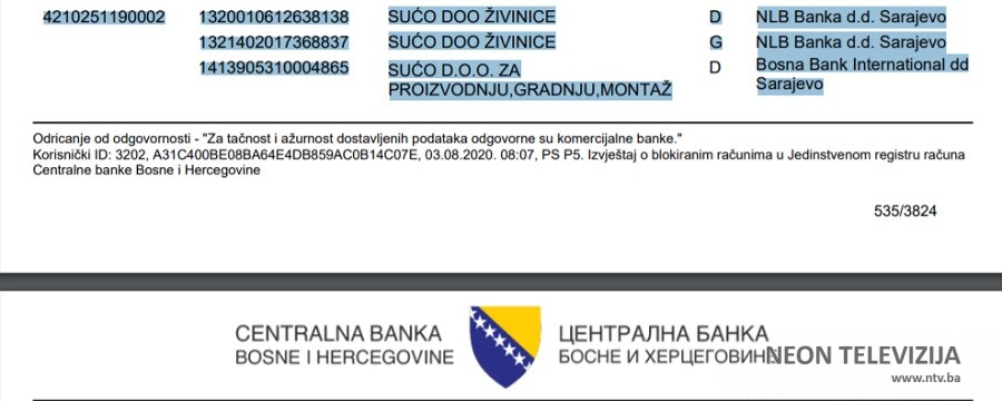 propisa u oblasti poslovanja blokirana četiri bankovna računa od strane