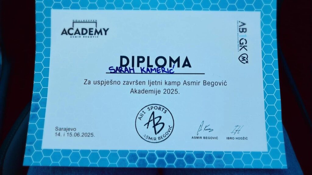 Podsjećamo, Sarah je svoju golmansku karijeru započela u golmanskoj Akademiji kalesijske Bosne nakon čega prelazi u ŽFK Sloboda Tuzla gdje je odmah pokazala svoj talenat i sjajnim nastupima privukla pažnju najvećih klubova u državi. Velike zasluge za njen napredak i razvoj imaju njeni treneri, Rijad Alić sa kojim je napravila prve golmanske korake a poseban kvalitet u razvoju i savladavanju golmanskih tehnika i stalnom napredovanju ostvrila je uz Emira Muratovića, sa kojim trenutno radi a koji nesebično ulaže svoj trud i znanje u njen napredak.