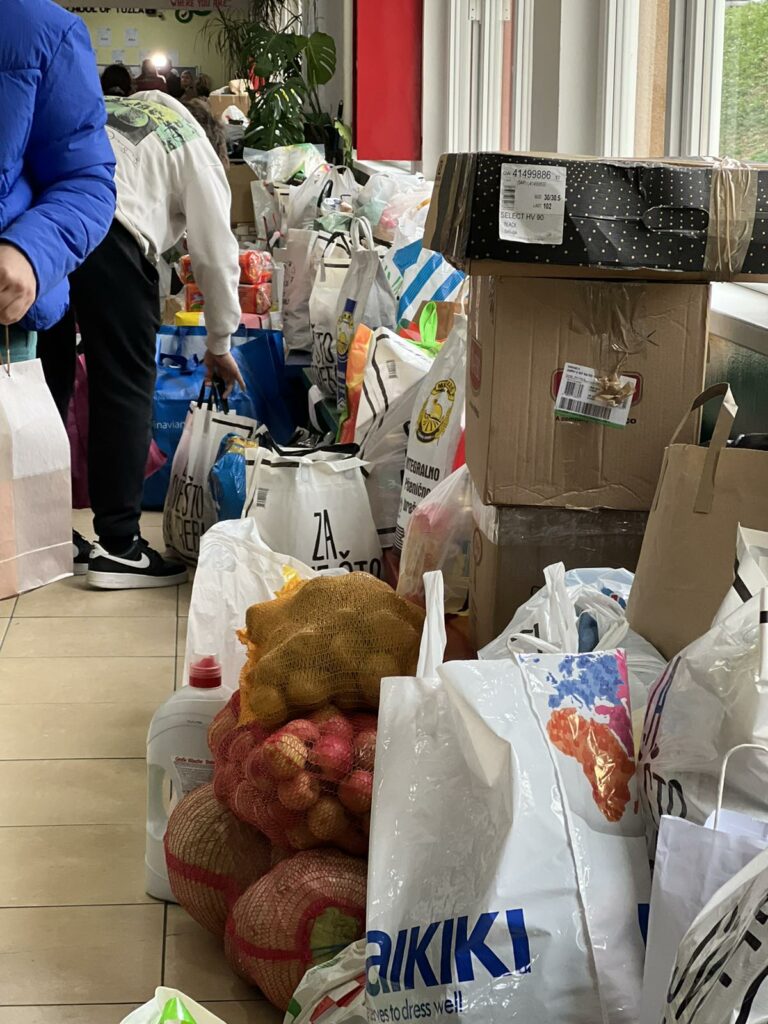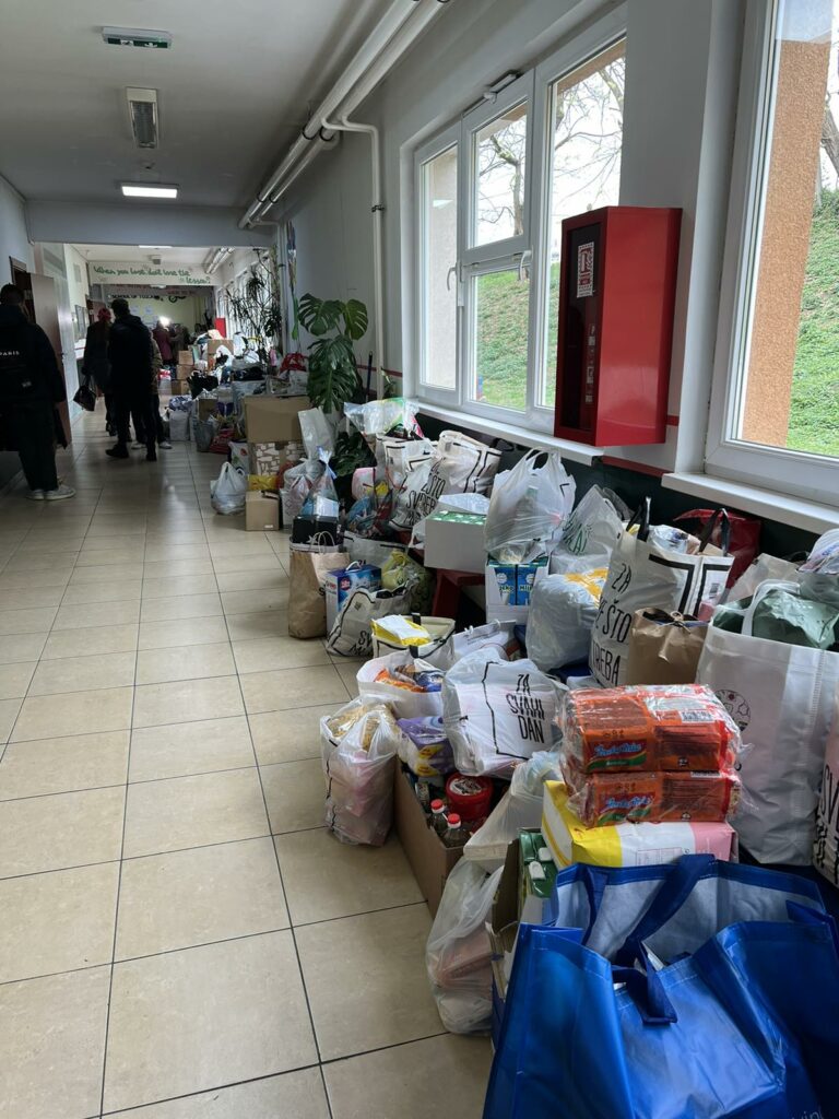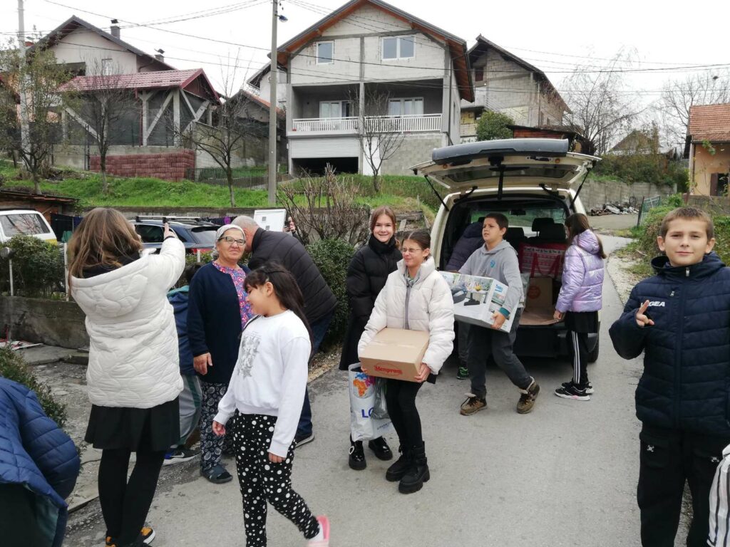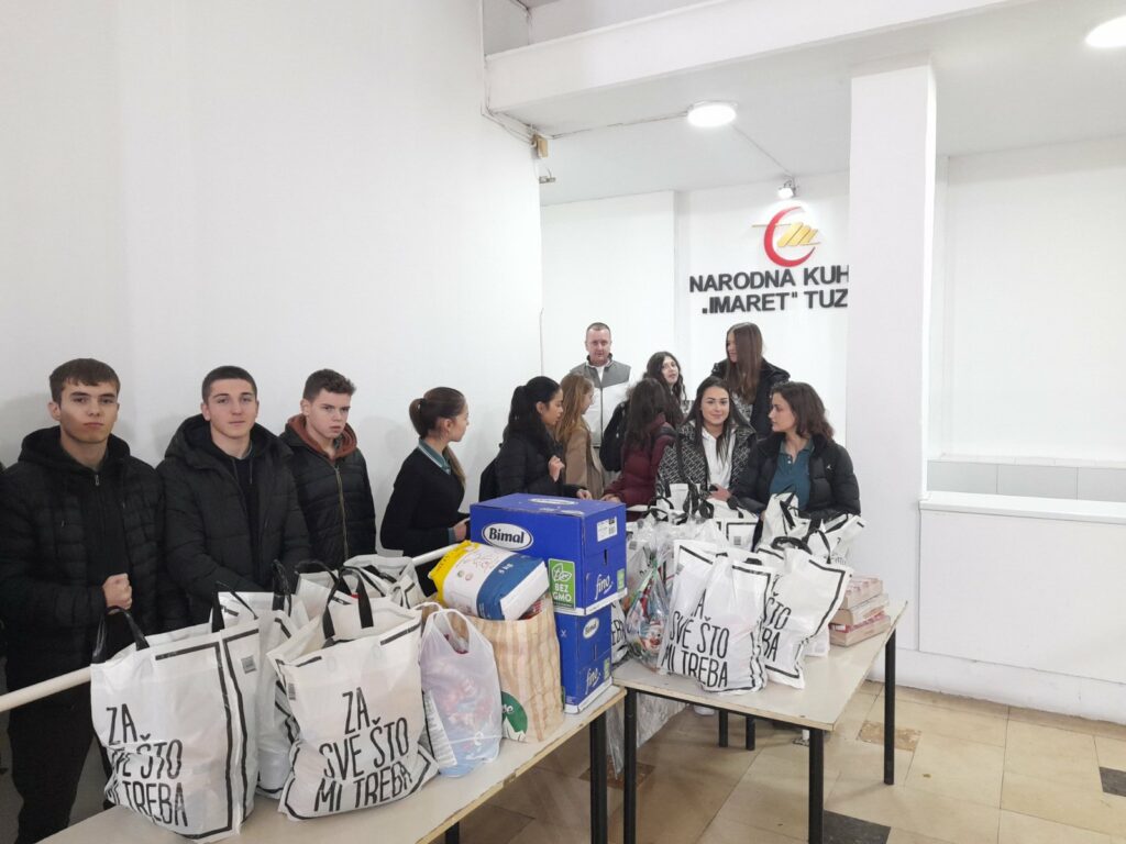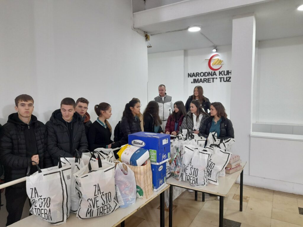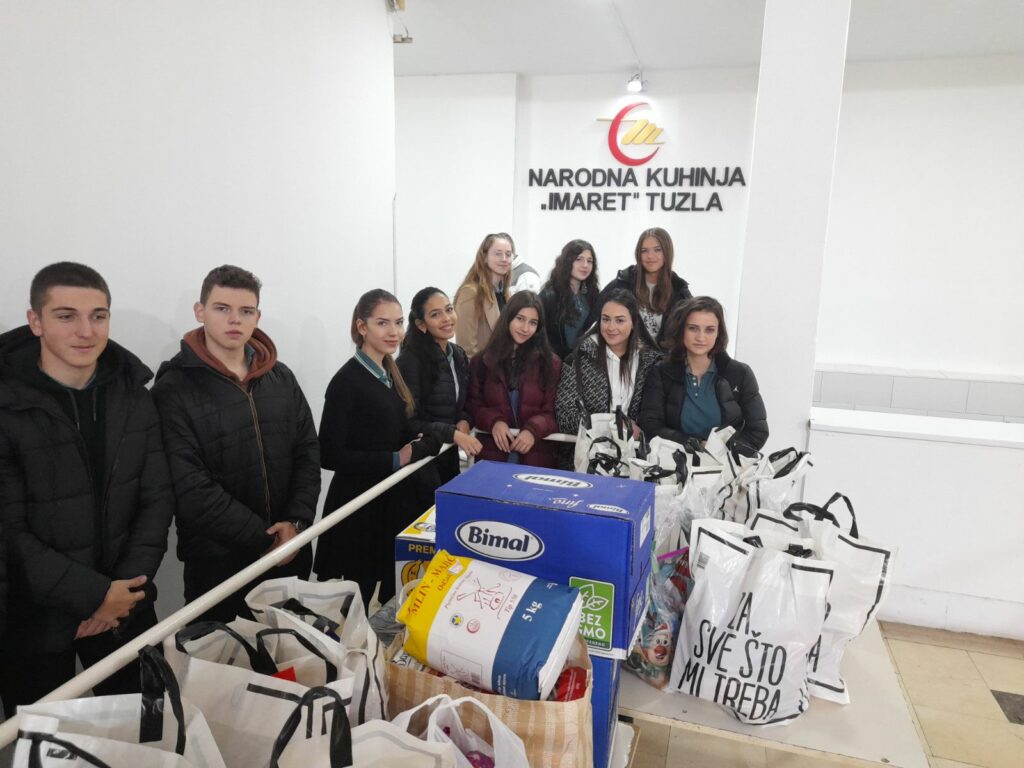 Učenici, nastavnici i roditelji, pomoć koju su prikupili tokom sedmice, u četvrtak su i dostavili na adrese porodica. Ove godine osim pomoći za 18 porodica pomoć u vidu osnovnih namirnica je uručena i Narodnoj kuhinji “Imaret” u Tuzli.