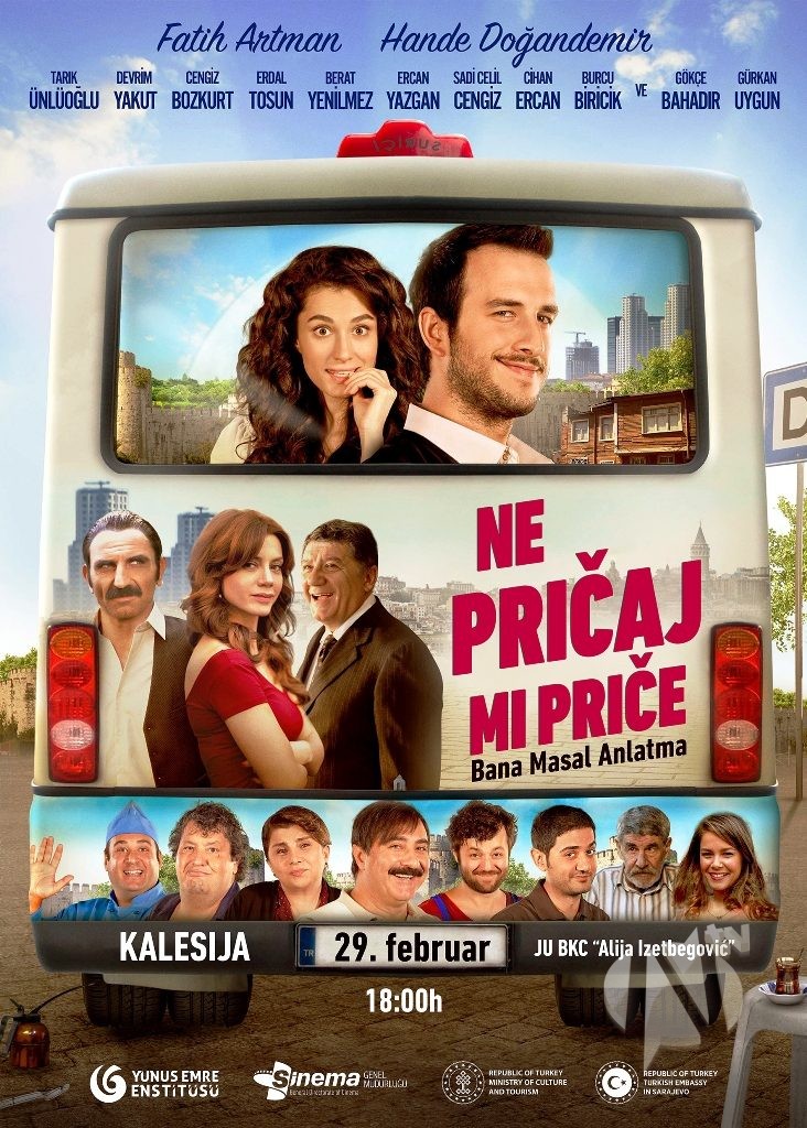 Medžlis Islamske zajednice Kalesija, u saradnji sa Institutom Yunus Emre iz Sarajeva i JU BKC “Alija Izetbeović” Kalesija, organizuje projekciju turskog igranog filma Ne pričaj mi priče – Bana masal anlatma. Projekcija će se održati u subotu, 29. februara 2020. godine, u Sali BKC-a “Alija Izetbegović” u Kalesiji, sa početkom u 18.00 sati. Ulaz je besplatan.