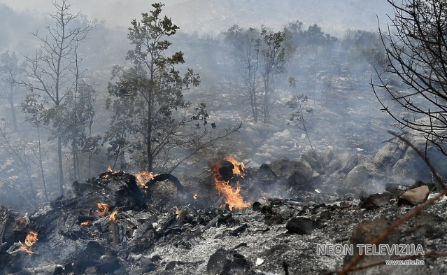 Nakon što se u jutarnjim satima vatra kratkotrajno smirila, oko podneva je požar počeo da bukti na teško pristupačnom terenu.