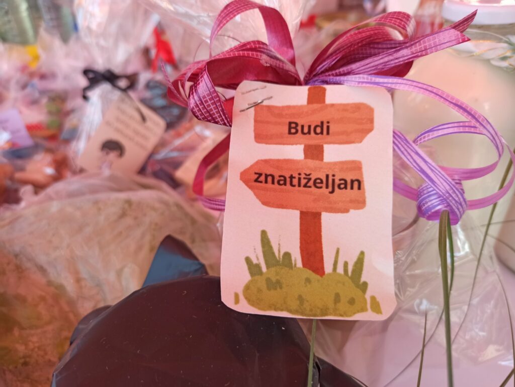 Na štandovima učenika od 1. do 9. razreda očekuje vas bogata ponuda ručno izrađenih proizvoda, umjetničkih radova, slatkiša, igračaka i još mnogo toga.