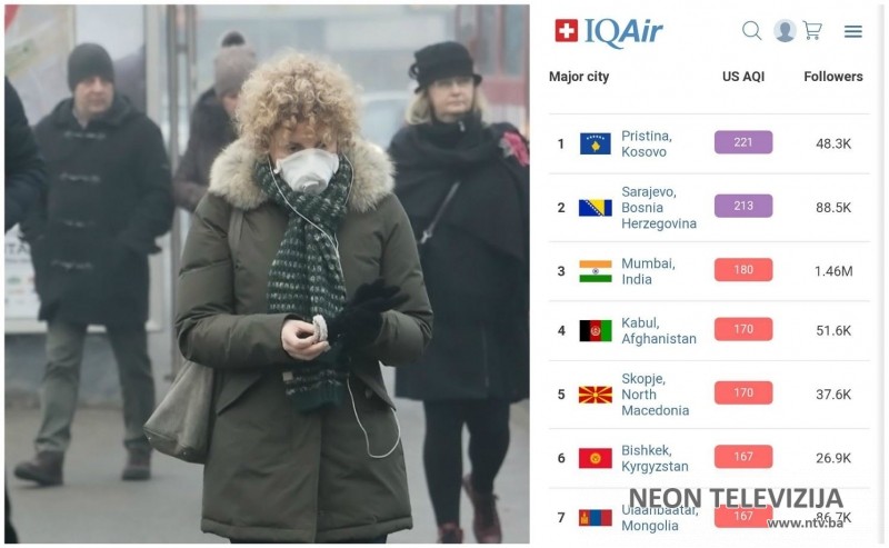 Prema stranici IQ Air, koji mjeri zagađenost zraka, Sarajevo je trenutno, nakon Prištine, najzagađeniji grad u svijetu.