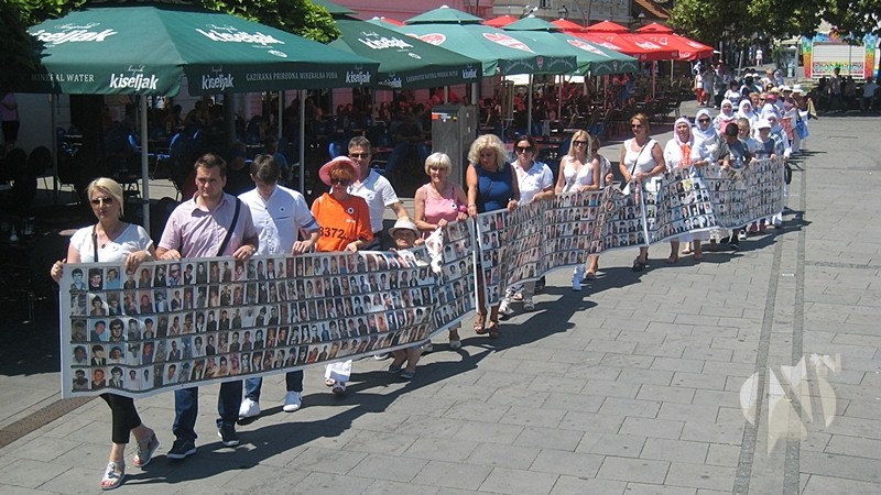 Članice udruženja “Žene Srebrenice” svakog mjeseca mirnim protestom podsjećaju da još traže svoje nestale. One u Potočarima 11. jula ispraćaju svoje najmilije na posljednji počinak, a fotografije njihovih najmilijih i natpise s imenima danas su preuzeli građani Tuzle i svi oni koji osjećaju bol žrtava genocida.