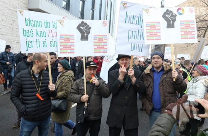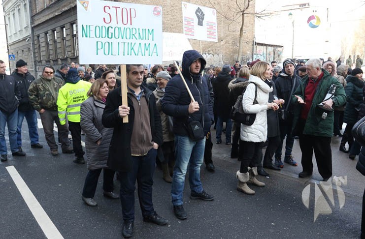 Više stotina bivših boraca i članova sindikata okupilo se na protestu na platou ispred zgrade Parlamenta Federacije Bosne i Hercegovine u Sarajevu, u kojoj danas treba da bude održana vanredna sjednica Predstavničkog doma.