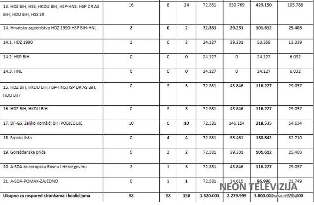 Još jedna koalcija koju predvodi HDZ BiH, ona sa HKDU BiH, HSP-HNS, HSP DR AS BiH, HDU BiH dobit će 116.227, koliko i koalicija HDZ BiH i HKDU BiH.