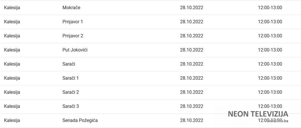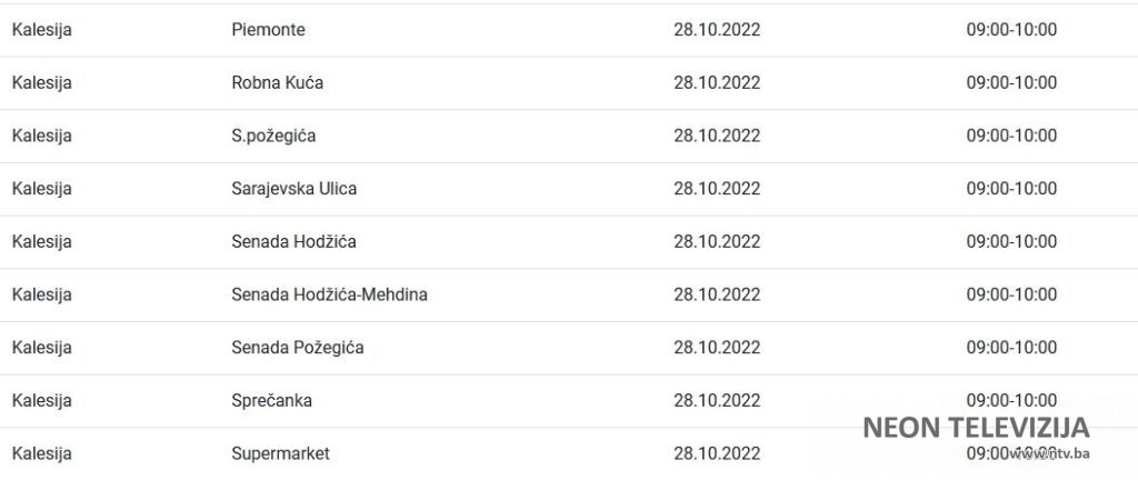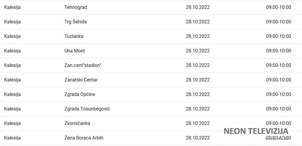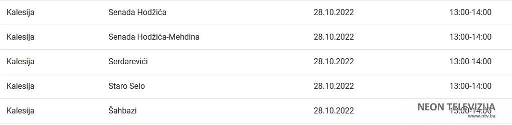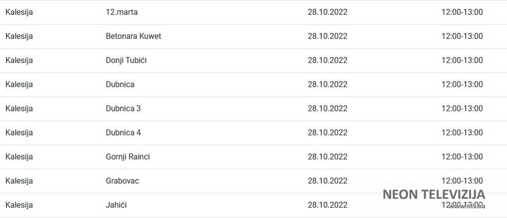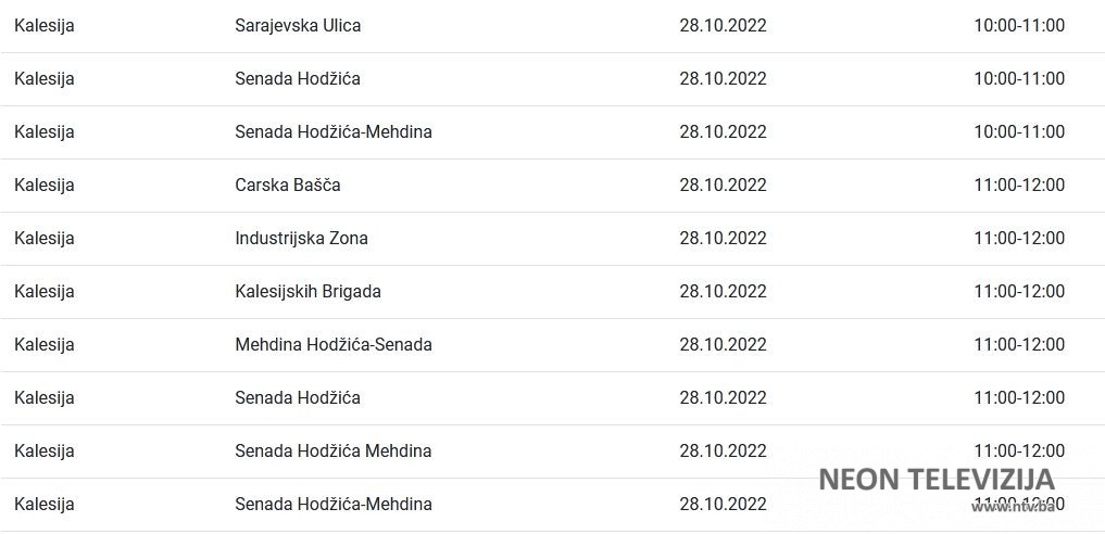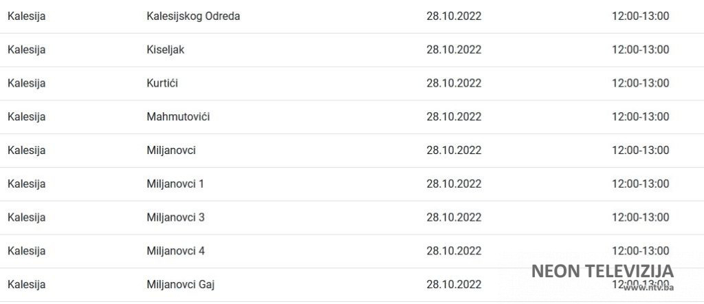 U nastavku pogledajte gdje će doći do prekida isporuke električne energije zajedno sa satnicom obustave.
