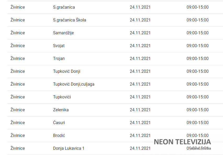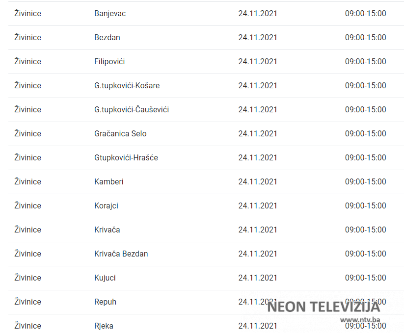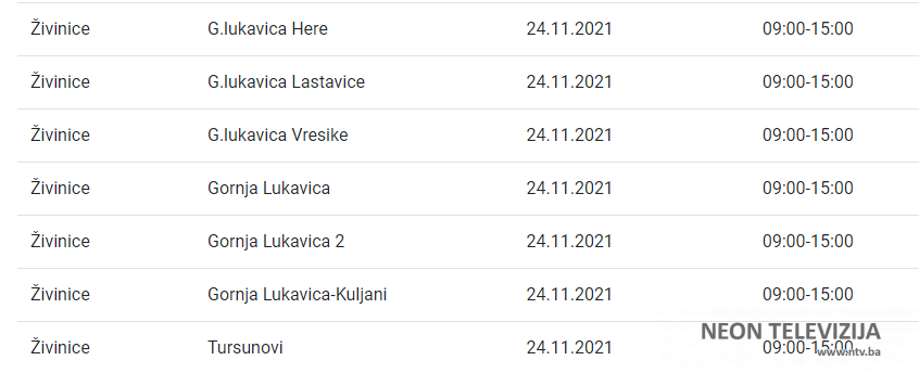 Zbog planiranih radova na elektrodistributivnoj mreži sutra će doći do prekida u snabdijevanju električnom energijom u sljedećim naseljima: