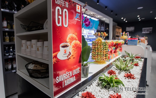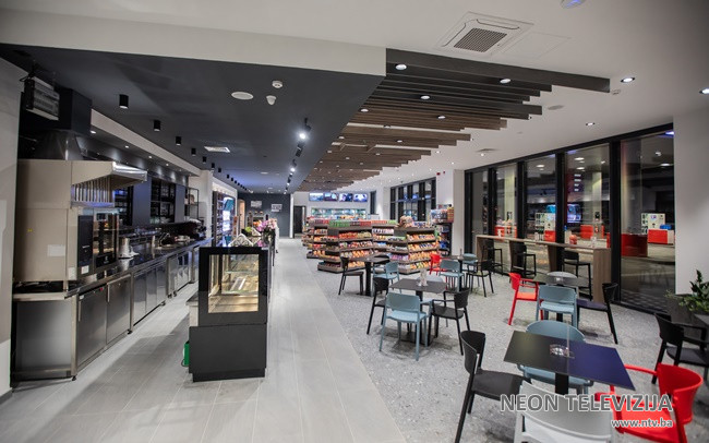 Za sve posjetioce benzinske pumpe na raspolaganju će biti i cafe bar sa 24 sjedeća mjesta i 10 visokih sjedećih mjesta kako bi se ugodno opustili uz kafu i napravili predah od vožnje, a raditi će svaki dan od 6