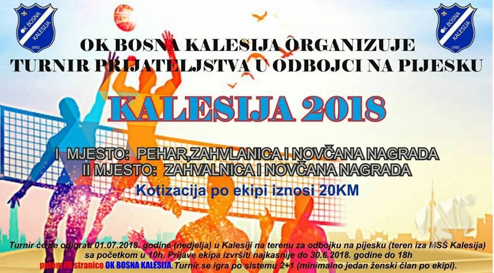 U organizaciji OK “Bosna” Kalesija sutra na terenu za odbojku na pijesku iza MSŠ Kalesija održat će se drugi ““Turnir prijateljstva u odbojci na pijesku”. Turnir počinje u 10:00 sati.