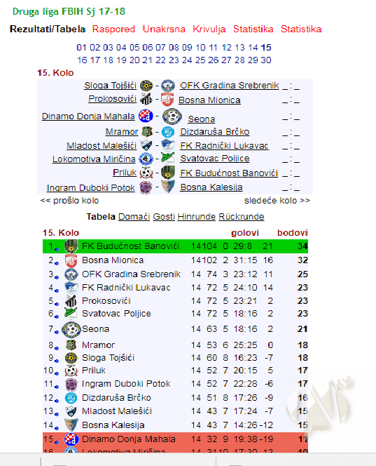 Rezultati posljednjeg kola itekako mogu promijeniti stanje na vrhu tabele. Prvo mjesto trenutno zauzima FK “Budućnost” iz Banovića sa 34 boda, dok 2 boda manje ima FK”Bosna” Mionica. Obje ekipe u posljednjem kolu igraju gostujuće utakmice. “Bosna” igra sa ekipom Prokosovića, dok “Budućnost” igra u Priluku.