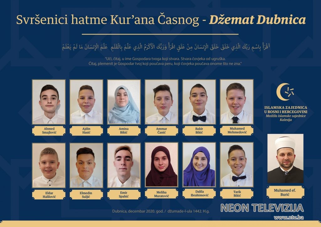 “U ime džemata polaznicima i njihovim roditeljima upućujemo iskrene čestitke, uz dovu Allahu dž.š. da Kur*an bude njihov oslonac i vodilja do sreće na oba svijeta. AMIN”piše na zvaničnoj stranici džemata Dubnica .