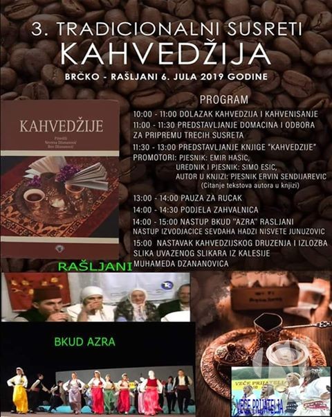 Domaćin kahvedžija je BKUD “Azra”, Rašljani. Očekuje se dolazak kahvedžija iz Hrvatske, Srbije, Crne Gore. Sve posjetitelje očekuje bogat kulturno-zabavni program, gdje će se prisutni družiti uz kahvu, pjesmu, poeziju…