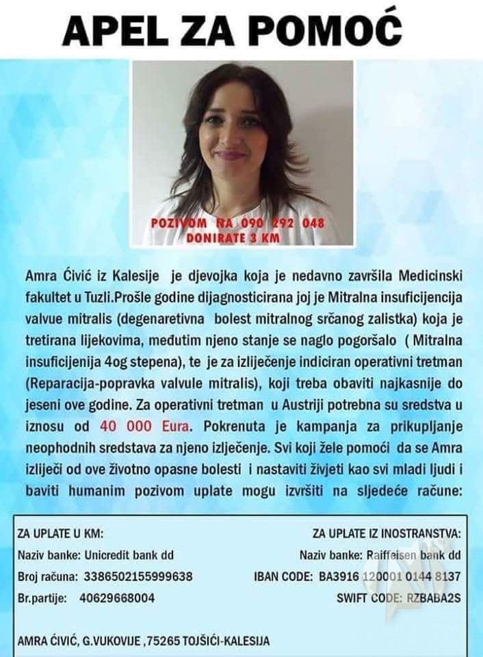 Ukoliko želite da i vi pomognete u liječenju doktorice Amre, dobrovoljne priloge moći ćete priložiti na sutrašnjem turniru.