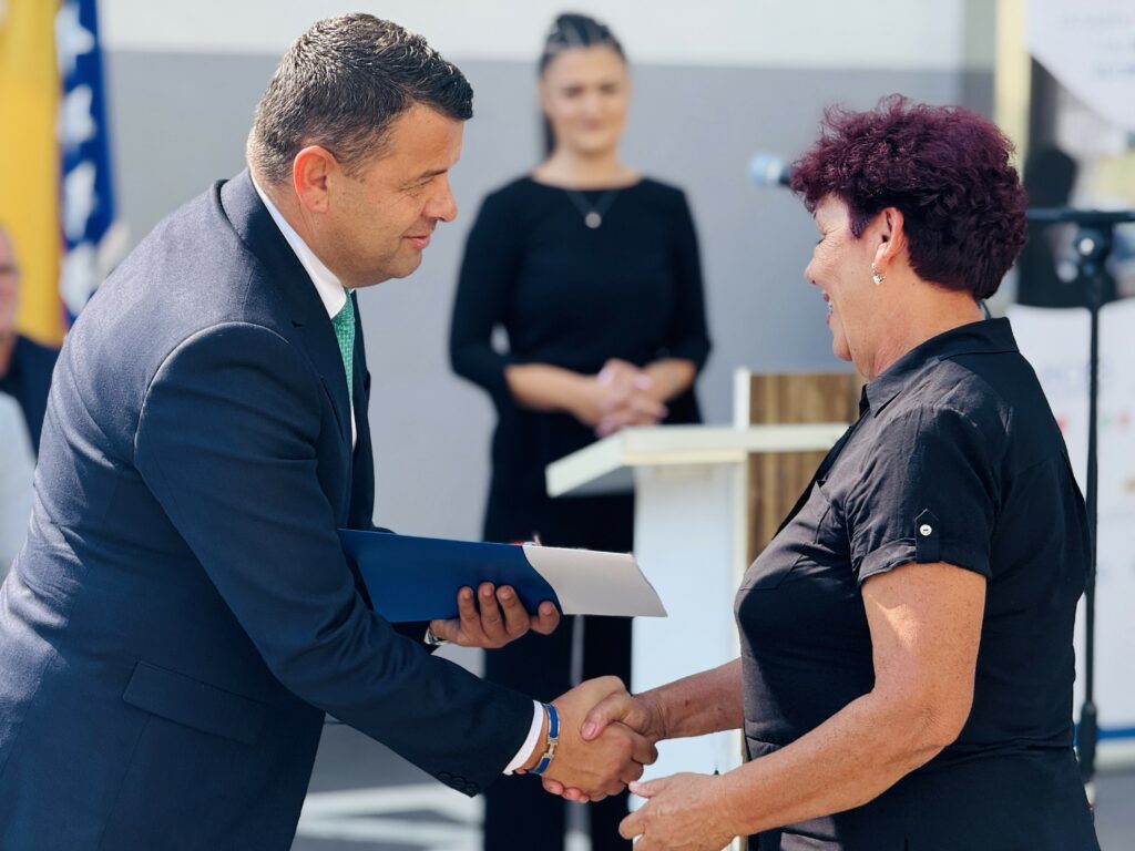 “Danas smo svjedoci jedne od najvažnijih faza Projekta CEB II – trajnog zatvaranja kolektivnih centara i alternativnih smještaja i pružanja sigurnog doma porodicama koje su decenijama živjele u teškim uvjetima. Federalno ministarstvo raseljenih osoba i izbjeglica, kao implementator projekta u Federaciji BiH, sa ponosom ističe da smo zajedno s našim partnerima osigurali nova, dostojanstvena stambena rješenja za porodice u Banovićima. Posebno cijenimo izuzetnu saradnju sa Općinom Banovići, koja je dala puni doprinos realizaciji ovog poduhvata. Nastavljamo raditi predano kako bismo zatvorili sve kolektivne centre i omogućili bolje životne uvjete za naše povratnike i raseljene osobe.”