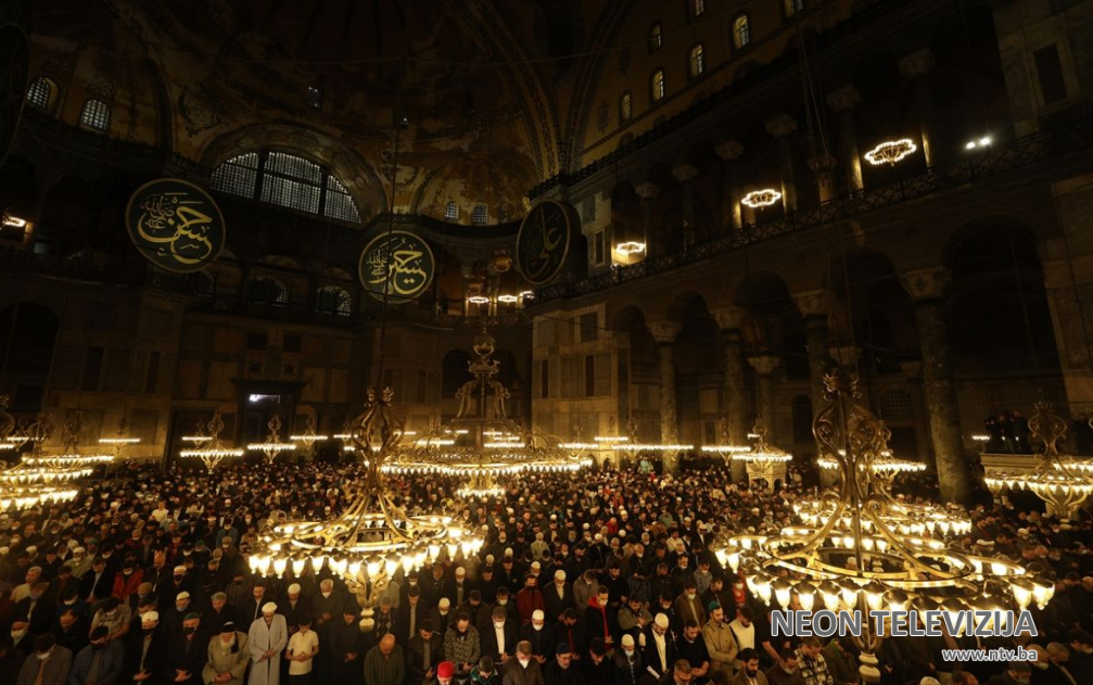 Nakon 88 godina u džamiji Aja Sofija u Istanbulu sinoć je klanjan teravih-namaz. Džamija Aja Sofija je 24. jula 2020. godine, nakon 86 godina, ponovno otvorena za molitve. Sinoć su brojni vjernici klanjali i teravih-namaz u džamiji Aja Sofija, koji je odgođen protekle dvije godine zbog pandemije koronavirusa. Vjernici su u džamiju počeli dolaziti već s akšam-namazom te je džamija Aja Sofija bila potpuno ispunjena čak 30 minuta prije teravih-namaza.