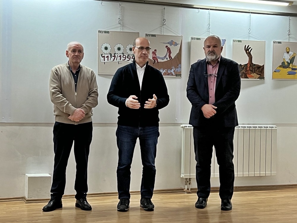 Izložbu je otvorio narodni poslanik u Skupštini manjeg entiteta Ramiz Salkić iz Bratunca koji je kazao da o genocidu i zločinima koji su počinjeni nad Bošnjacima treba češće govoriti ne samo 9.januara nego i sve ostale dane u godini. On je kazao da su presude Međunarodnih sudova pokazale da su Srbi i tzv.Vojska RS-a pokušali jedan narod da istrijebe da nestane i o tome treba pričati i pisati. Prisjetio se Salkić i aprilskih dana 1992.godine kada su Srbi sa druge strane Drine ušli u gradove i sela u Podrinju i kada su počinili strašne zločine, te kada su tijela ubijenih majki, sestara i očeva plutala Drinom.