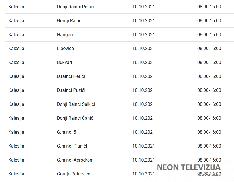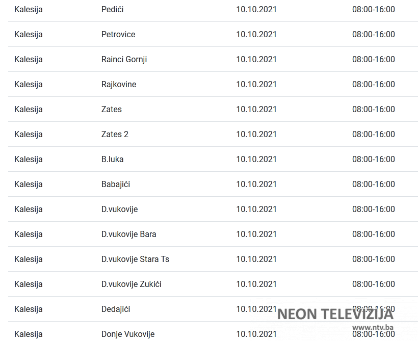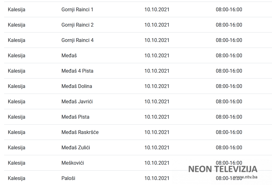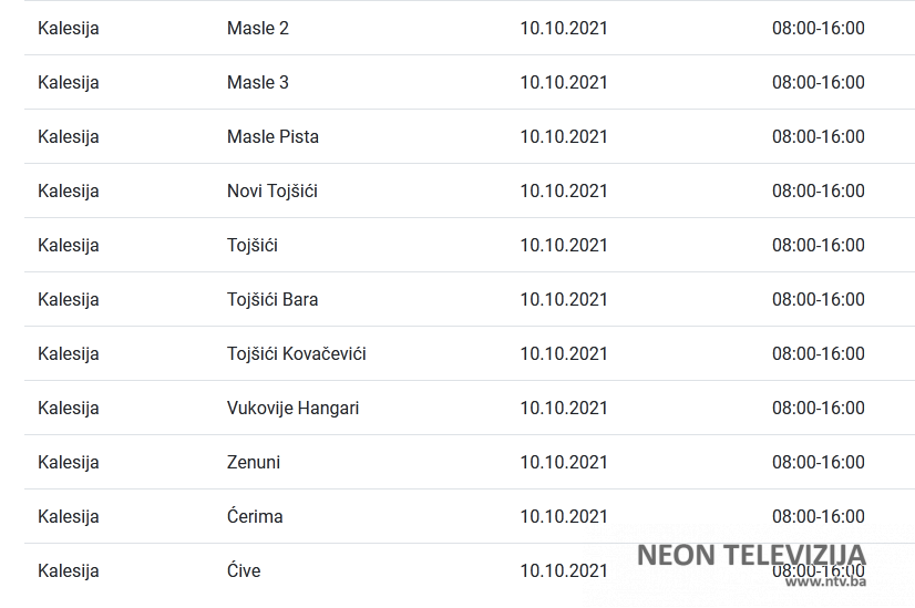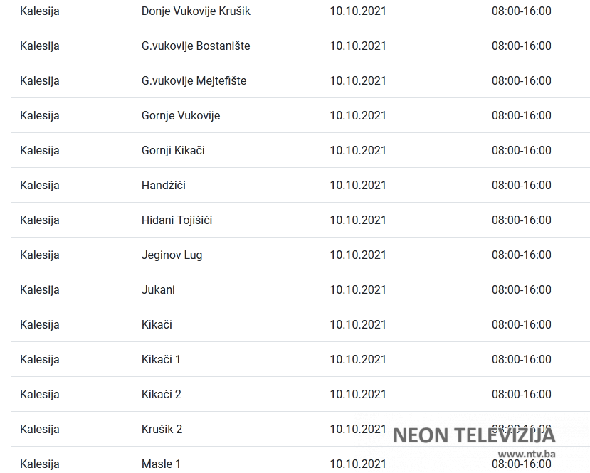 Do prekida u sanbdijevanju električnom energijom doći će i u nekoliko kalesijskih naselja: