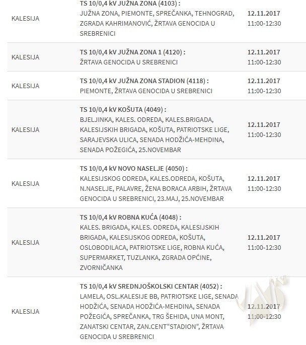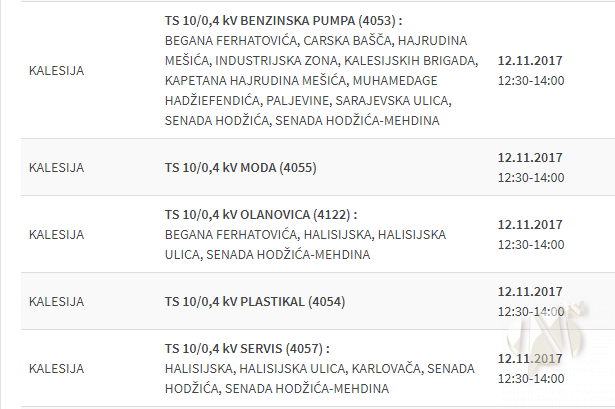 Zbog radova na elektrodistributivnoj mreži u nedjelju, 12.novembra doći će do prekida u snabdijevanju električnom energijom u nekoliko ulica u općini Kalesija
