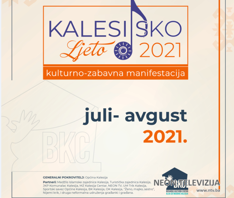 Nakon više od godinu i pol dana rada i funkcionisanja u uslovima pandemije, kada je cjelokupna naša aktivnost bila svedena na minimum i puko održavanje u životu, konačno se nazire postepeno vraćanje u normalne kolosijeke, kako one suštinske životne, tako i kulturne, poslovne i druge. Tako JU Bosanski kulturni centar „Alija Izetbegović“ Kalesija najavljuje Kulturno-zabavnu manifestaciju „Kalesijsko ljeto 2021“, planiranu za juli i august, koncipiranu da ponudi zanimljive kulturno- zabavne sadržaje za sve naše sugrađane a, zašto ne reći – i šire.