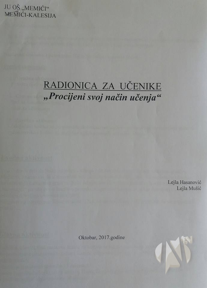 Učiteljica Lejla Hasanović i pedagogica Lejla Mušić u saradnji sa Vijećem učenika Osnovne škole “Memići” održali su radionicu “Procijeni svoj način učenja”.