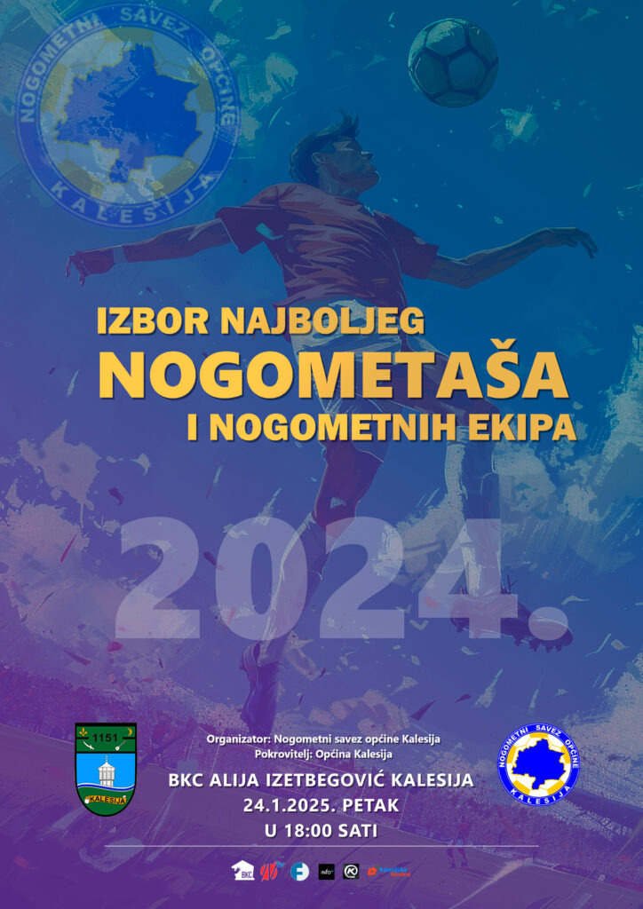 Izbor za najboljeg nogometaša i nogometne ekipe u 2024. godini održat će se u Velikoj sali BKC “Alija Izetbegović” sa početkom u 18:00 sati.