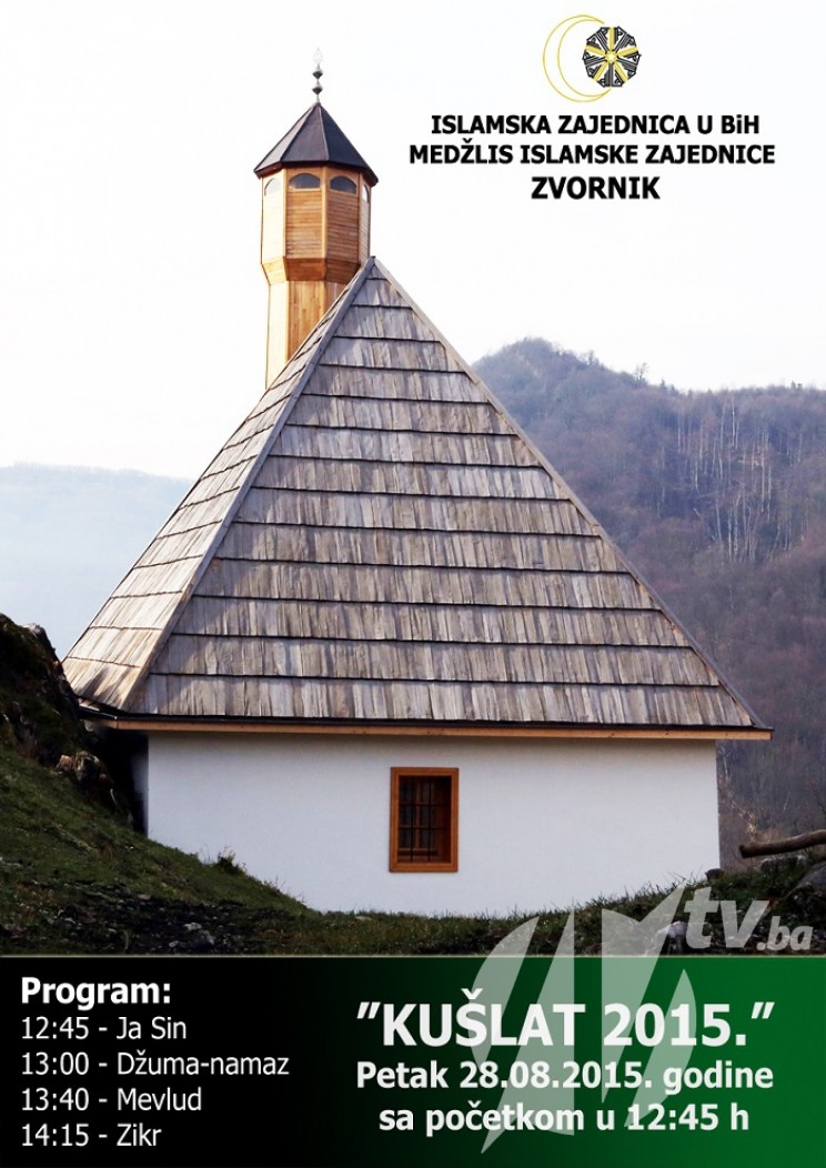 Medžlis Islamske zajednice Zvornik organizuje manifestaciju “Kušlat 2015” u petak, 28.08.2015.godine, u zvorničkom naselju Pahljevići kod Drinjače. Program počinje učenjem Kur'ana u 12:45, a klanjat će se i džuma namaz, nakon čega slijedi mevlud i zikr.