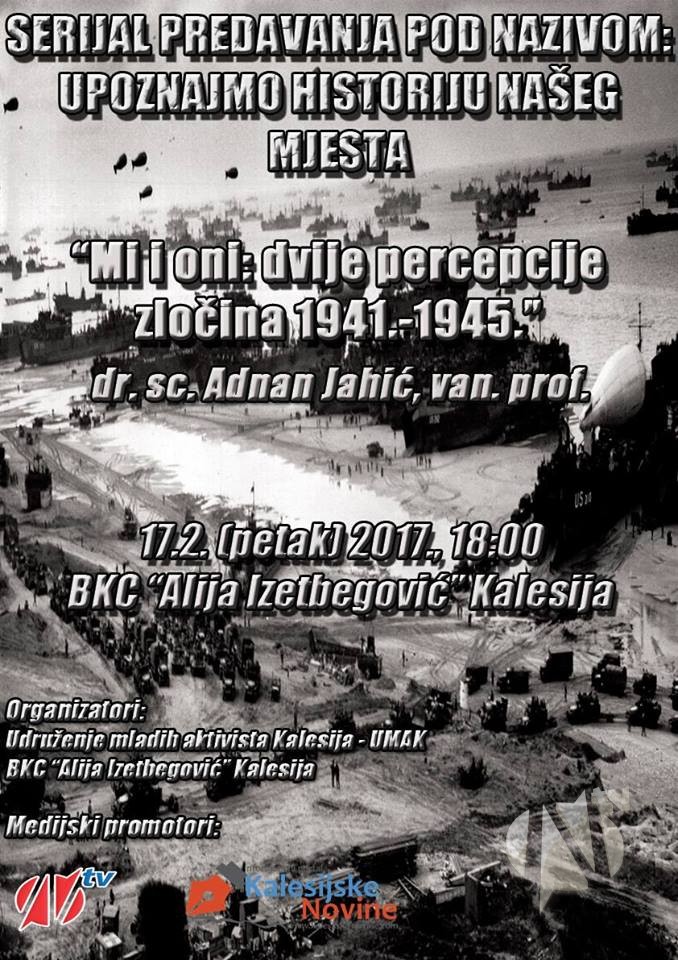 Ovaj put će predavanje biti na temu “Mi i oni: dvije percepcije zločina 1941-1945.”, a govorit će dr. sc. Adnan Jahić, van. profesor.