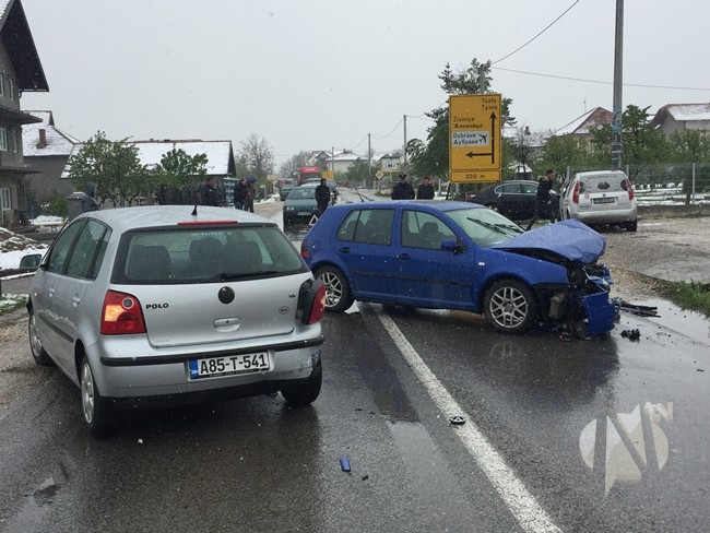 Dvije osobe povrijeđene su u saobraćajnoj nesreći koja se dogodila danas oko 13:00 sati na magistralnom putu M4 u kalesijskom naselju Međaš.