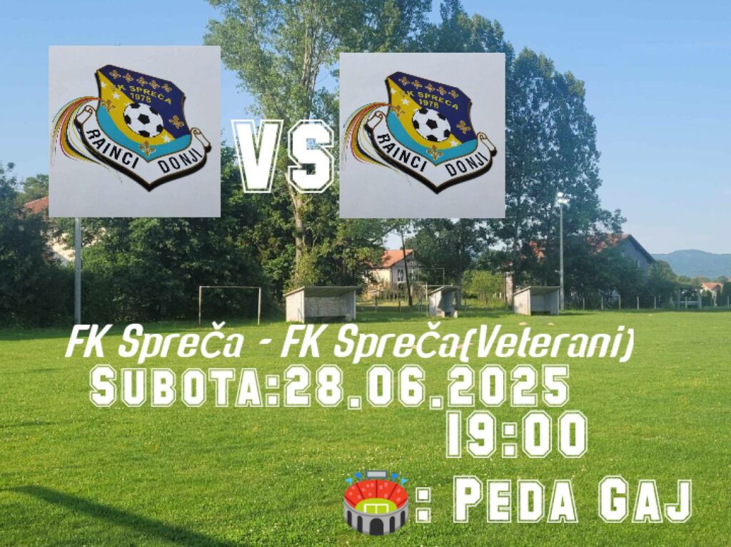Na stadionu “Peda Gaj” u Raincima Donjim će u subotu, 28. juna 2025. godine s početkom u 19 sati biti odigrana revijalna utakmica između prvog tima FK Spreča i ekipe Veterana ovog kluba.