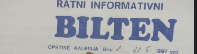 “Teritorijalna odbrana Opštine Kalesija, na najširi, najraznovrsniji i najkarakterističniji oblik organizovanja građana za oružano suprostavljanje agresoru, u kojoj je u ovim teškim ratnim uslovima neposredno i najmasovnije uključen veliki dio stanovništva sposobnog za oružanu borbu. Polazeći od činjenice da pravovremeno, potpuno, objektivno I angažovano informisanje i ofanzivna propagandna djelatnost imaju izvanredno značajnu ulogu u teritorijalnoj odbrani, Krizni štab Opštine Kalesija donio je Odluku o formiranju PRES-CENTRA sa privremenim sjedištem u Tojšićima. Nakon obavljenih konsultacija i materijalno-tehničke pripreme, te pred sobom već danas imate prvi broj kalesijskog Ratnog biltena, putem kojeg ćemo u narednom periodu; govoriti o ciljevima agresije na našu opštinu, sprečavati širenje neprijateljske propagande, upoznavati vas o mogućnostima, metodama i mjerama protiv agresora, obavještavati o stanju, pokretima i akcijama naših jedinica i namjerama agresora, doprinositi organizovanju i mobilizaciji građana za odbranu, jačati moralno jedinstvo, borbeni moral i psihološku otpornost stanovništvai Teritorijalne odbrane, te obavještavati stranu i domaću javnost radi podrške u udbrani Kalesije i Republike Bosne i Hercegovine.“