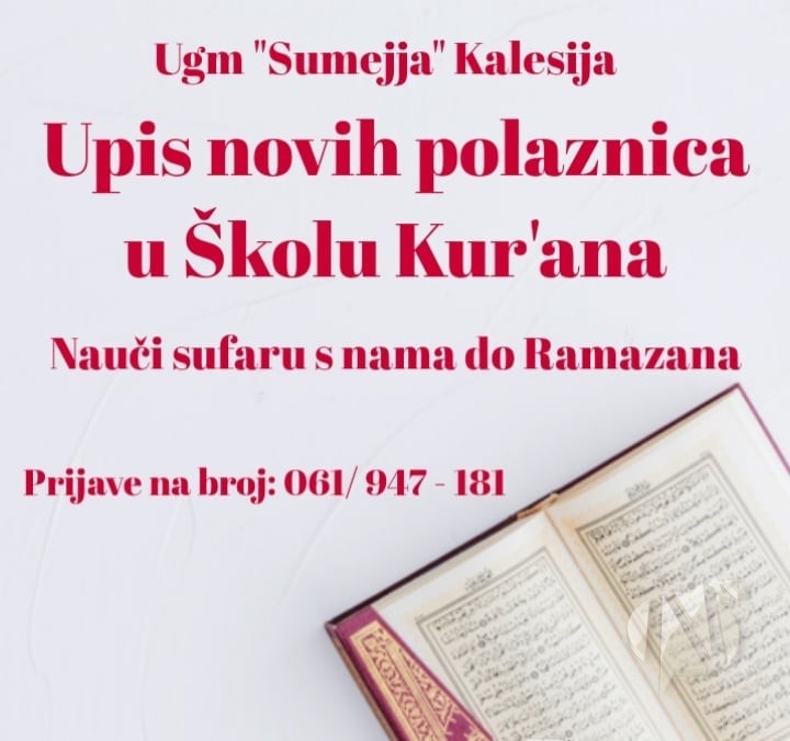 U Ugm “Sumejja” Kalesija upriličena je svečanost povodom uspješno savladanog arapskog pisma šest polaznica Škole Kur'ana. Svečanost je započela, nakon ikindije namaza, prigodnim predavanjem koje je održala profesorica islamske vjeronauke Azra Sakić, mualima u udruženju, a nakon toga uslijedila je dodjela diploma, nakon čega su prisutne imale priliku da čestitaju, međusobno se upoznaju i podijele radost kroz druženje.