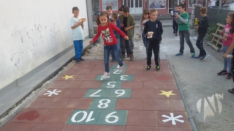 U OŠ “Kalesija” je u prošloj sedmici realizovan i projekat “Školica”, kojom prilikom je firma iz Lukavca poklonila površinu 2.5×4 metra koja je obložena betonskim pločnicima na kojoj su ispisani brojevi, predstavljajući staru popularnu igru za djecu.
