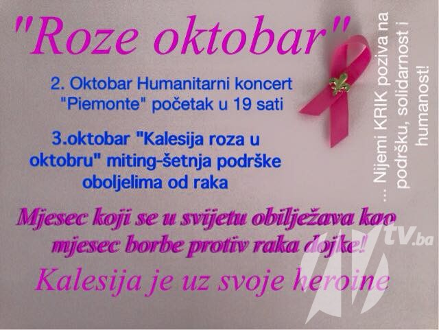 Povodom obilježavanja mjeseca borbe protiv karcinoma dojke, Udruženje “Nijemi krik” organizuje “Roze oktobar” u Kalesiji.