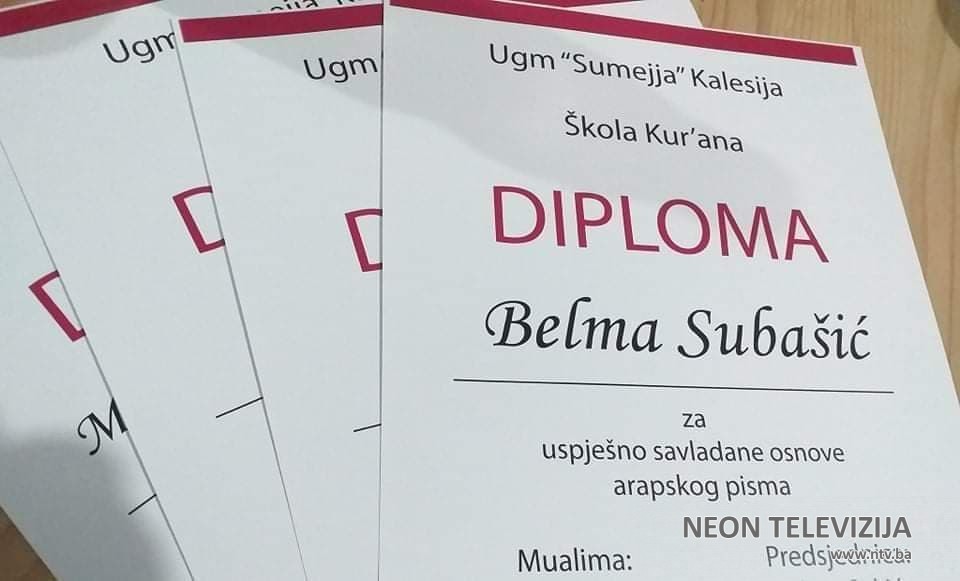 Udruženje građanki muslimanki “Sumejja” Kalesija radosno obavješta da Škola Kur'ana za žene ima nove diplomantice koje su uspješno savladale arapsko pismo kroz Zimsku online školu Kur'ana, a to su: Zehra Đedović, Belma Subašić, Merima Redžepović-Musić i Azra Sakić. Tim povodom u protekloj sedmici novim diplomanticama uručene su diplome Škole Kur'ana i Kur'ani koji su poklon od Behram-begove medrese u Tuzli.