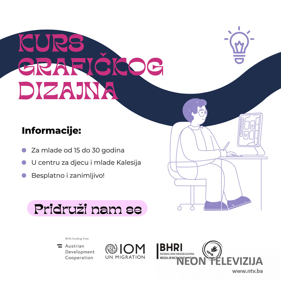 Kurs grafičkog dizajna će se održavati ?subotom u prostorijama Centra za djecu i mlade.