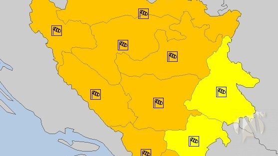 Tako je u regijama Banjaluke, Bihaća, Livna, Sarajeva i Foče upaljen narandžasti meteoalarm zbog jačine vjetra. Također, za Livno je izdato i narandžasto upozorenje zbog očekivane količine padavina koja će iznositi između 30 i 60 litara po metru kvadratnom.