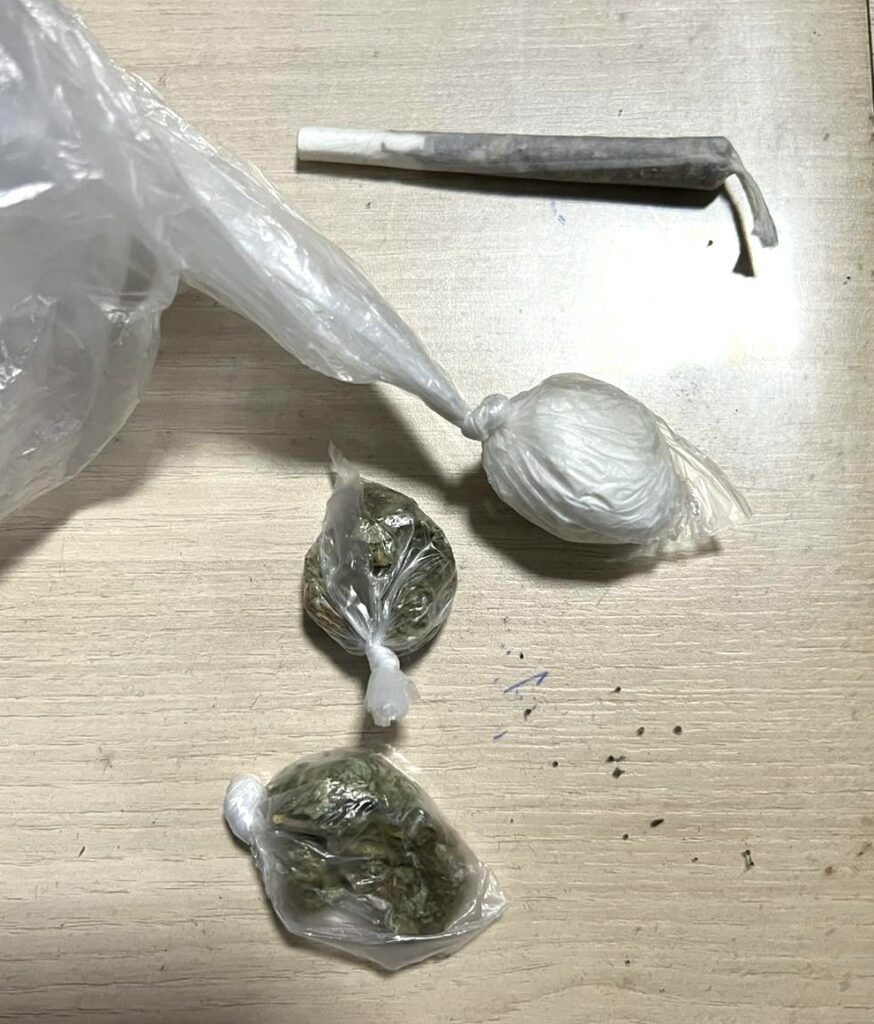Prilikom pretresanja, pronađeni su i oduzeti sljedeći predmeti: 4 pakovanja bijele praškaste materije koja svojim izgledom asocira na opojnu drogu, 2 pakovanja sa sadržajem biljne materije koja svojim izgledom asocira na opojnu drogu, 1 pakovanje smeđe materije koja asocira na opojnu drogu, 1 ručno motana cigareta – tzv. “Joint”, 1 starni pištolj i drugi predmeti koji se dovode u vezu sa počinjenjem krivičnih djela iz oblasti zloupotrebe opojnih droga.