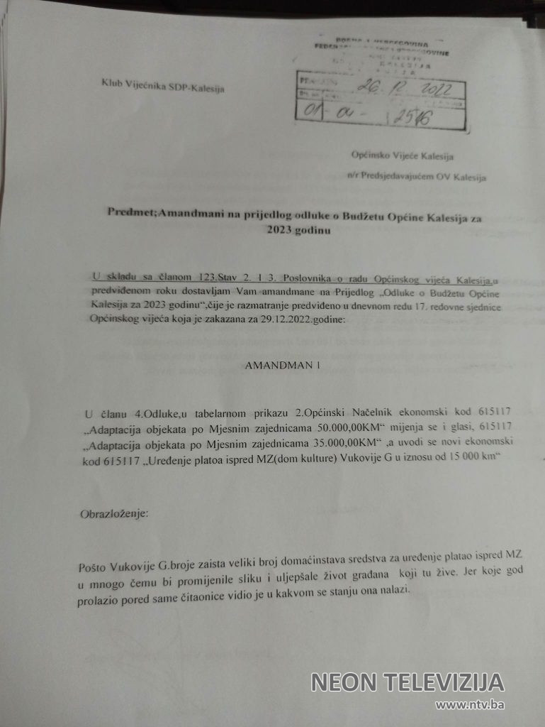 Nekoliko vijećnika dostavilo je i Amandmane na prijedlog odluke o budžetu Općine Kalesija za 2023. godinu.
