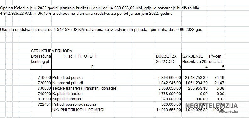 Od ukupnog budžeta za 2022. godinu 16 miliona, 660 hiljada KM, za šest mjeseci (period 01.01.2022. – 30.06.2022.godine) ostvarnje budžeta je bilo 5 miliona KM.
