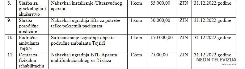 Neki od Planova kapitalnih ulaganja odnose se na nabavka putničkog sanitetskog vozila za prevoz dijaliznih pacijenata, nabavka i ugradnja lifta za potrebe teško pokretnih pacijenata, sufinasiranje izgradnje objekta područne ambulante Tojšići, nabavka biohemijskog analizatora…