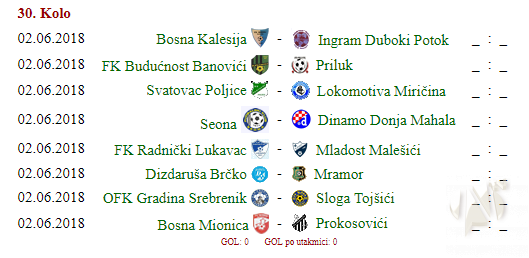 U utakmici 30.kola FK “Bosna” Kalesija dočekuje ekipu “Ingram” Duboki Potok. Kalesijska ekipa nalazi se na predposljednjem mjestu na tabeli sa 37 osvojenih bodova.