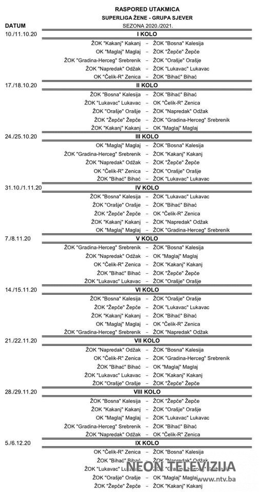 Utakmice nove sezone u Superligi počinju 10. odnosno 11. oktobra 2020.godine. Utakmicu prvog kola odbojkašice ŽOK “Bosna” Kalesija igraju u Kaknju protiv ekipe ŽOK “Kakanj”.