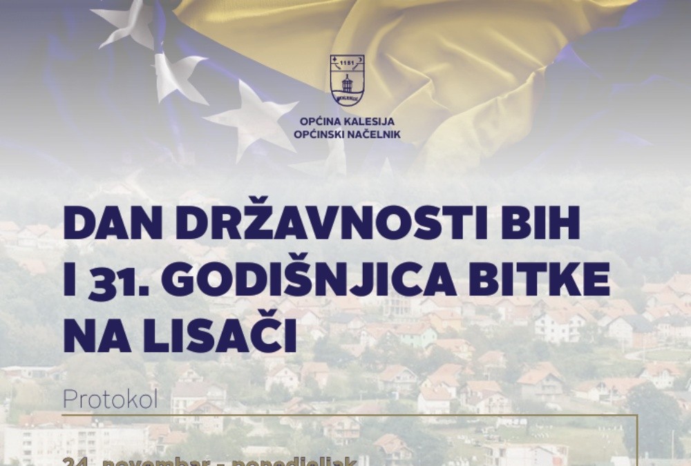 Organizacioni odbor za obilježavanje bitnih datuma i događaja značajnih za obilježavanje na području općine Kalesija, utvrdio je protokol obilježavanja 25.novembra Dana državnosti Bosne i Hercegovine te 31.godišnjice bitke na Lisači.