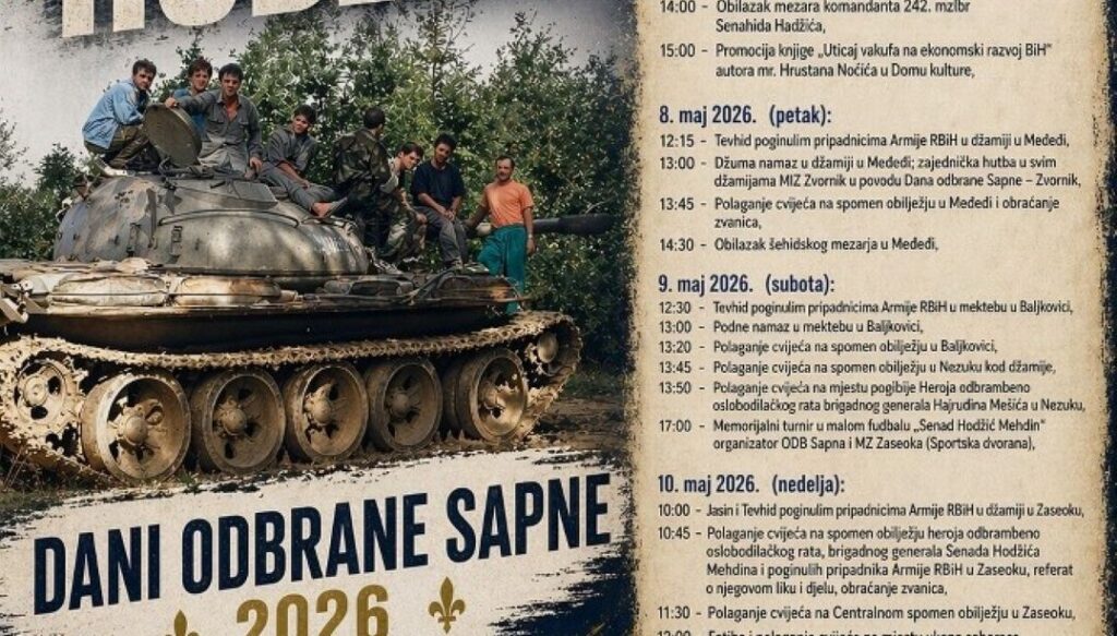 Manifestacija pod nazivom “Dani odbrane Sapne 2026” trajat će od 5. do 10. maja, a program obuhvata kulturne, vjerske i historijske sadržaje.