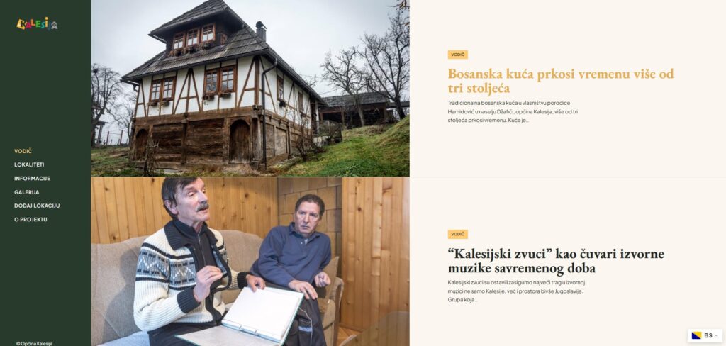 Posebno mjesto na web stranici zauzima kategorija kulturno-historijskog naslijeđa. Kalesija je prostor bogate prošlosti, a brojni lokaliteti, spomenici, vjerski objekti i historijske priče svjedoče o kontinuitetu života i identiteta ovog kraja.